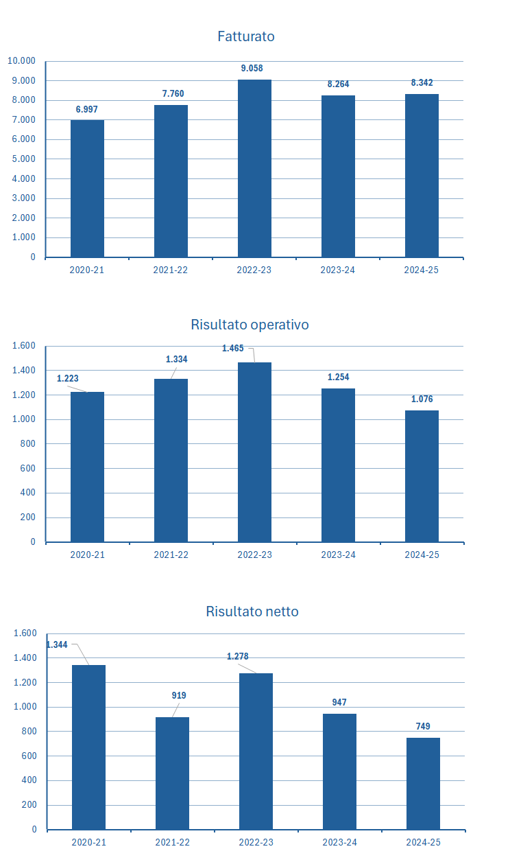 | Fatturato | 6.997 | 7.760 | 9.058 | 8.264 | 8.342 |