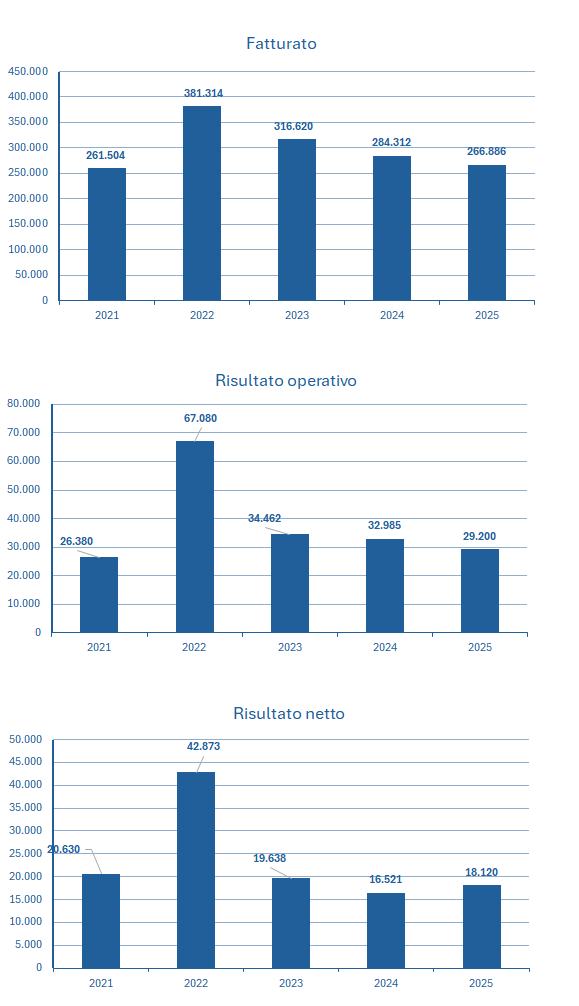 | Fatturato | 261.504 | 381.314 | 316.620 | 284.312 | 266.886 |