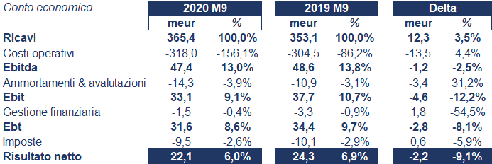 L’andamento dei ricavi è riportato nella tabella seguente: