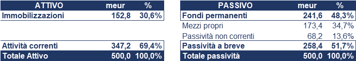 Alla data sopra indicata lo stato patrimoniale era il seguente: