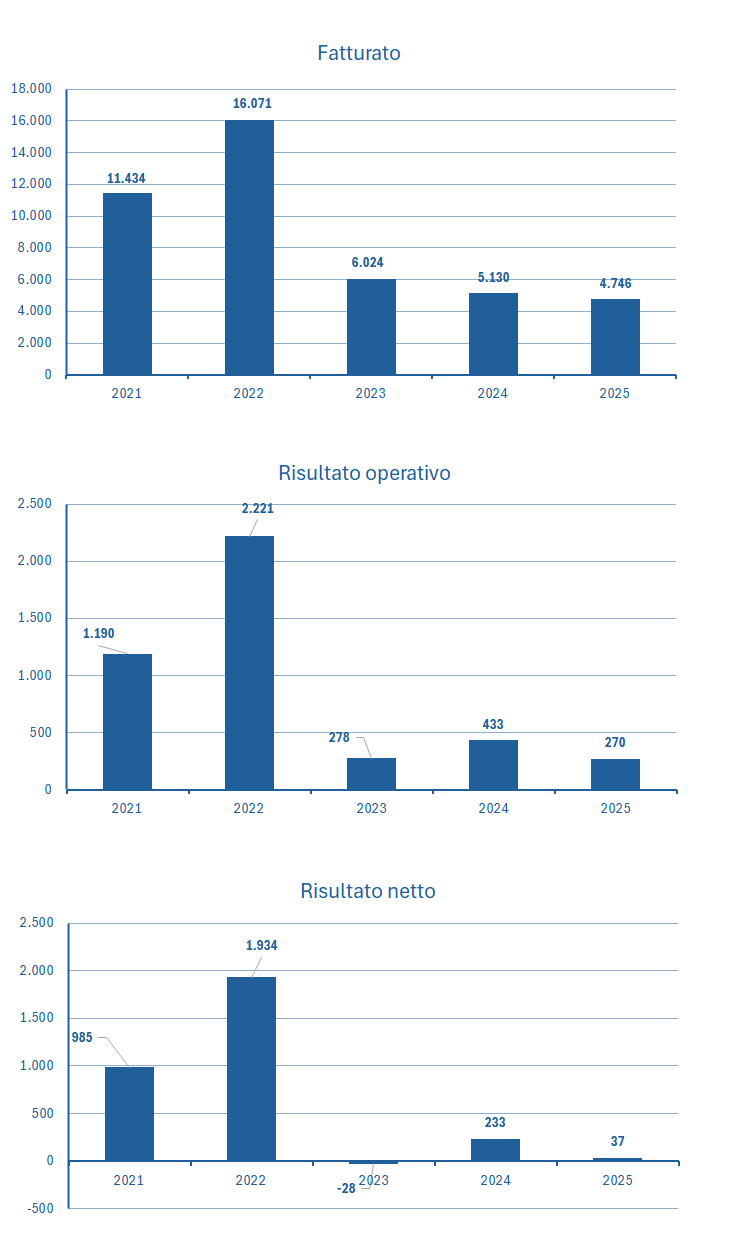 | Fatturato | 11.434 | 16.071 | 6.024 | 5.130 | 4.746 |