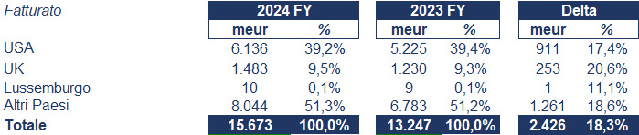 La ripartizione geografica dei suddetti ricavi è esposta nel prospetto seguente: