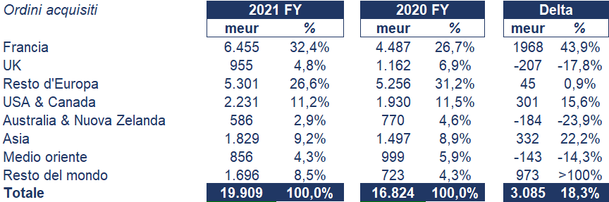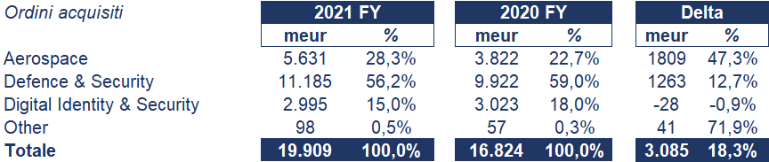 Analogamente, gli ordini acquisiti nel periodo sono cono indicati nel prospetto sottostante: