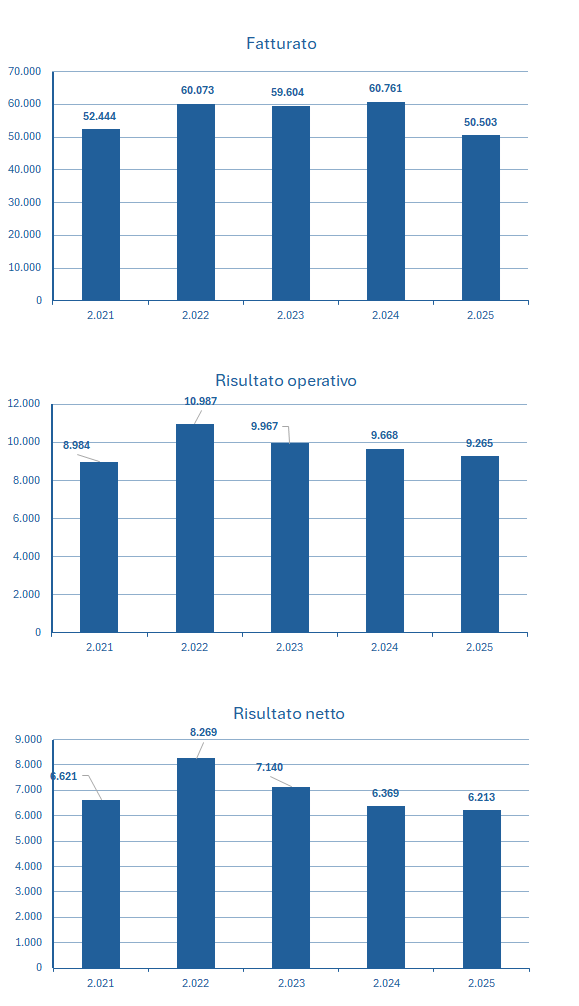 | Fatturato | 52.444 | 60.073 | 59.604 | 60.761 | 50.503 |
