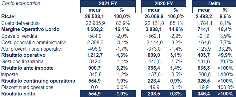 L’andamento dei ricavi è esposto nella tabella seguente: