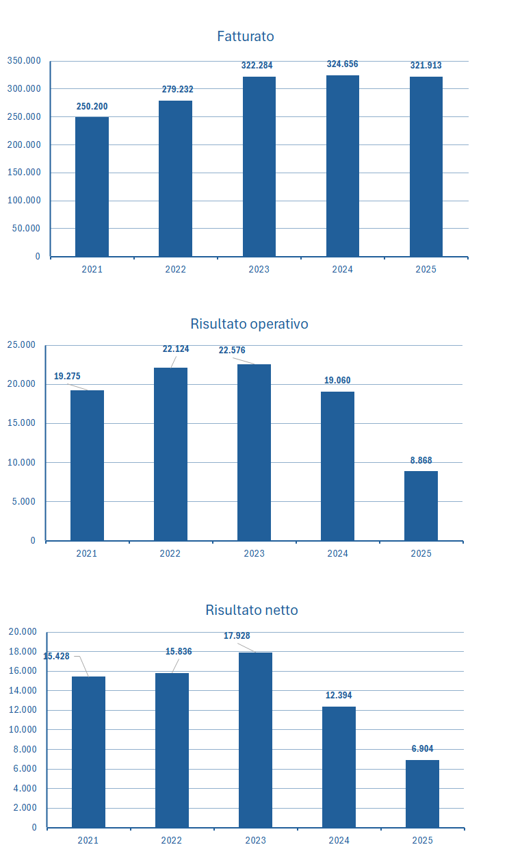 | Fatturato | 250.200 | 279.232 | 322.284 | 324.656 | 321.913 |