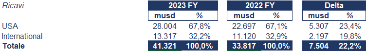 Da un punto di vista geografico, l’evoluzione dei suddetti ricavi, è riportata nella tabella sottostante: