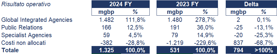 Più in dettaglio, la composizione del risultato operativo è riportata nella tabella sottostante: